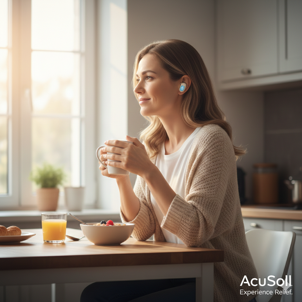Discreto, leggero e incredibilmente efficace. Che tu stia sorseggiando il tuo caffè o pianificando la giornata, AcuSoll lavora silenziosamente per te. Riducendo lo stress uditivo alla radice, ti permette di ritrovare la concentrazione e la serenità che meriti.